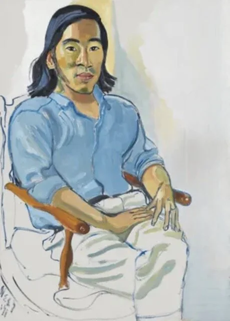 Octo Leaning, charcoal, acrylic, and oil paint on canvas, 34”x32”