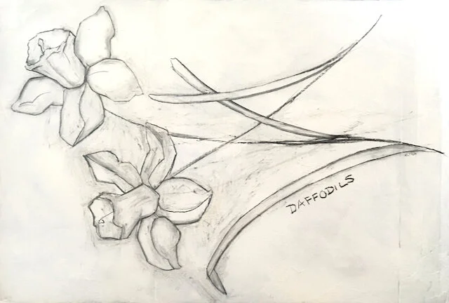 When I'm working in my studio, things often seem to take ages and it can be hard to see what I've accomplished, but each time I check the clock I see it's only been a few hours and I have made actual progress. Time feels different now, and in the spirit of embracing that, I am sharing my first time lapse video: a quick sketch of a daffodil. Click on the arrow below to watch.